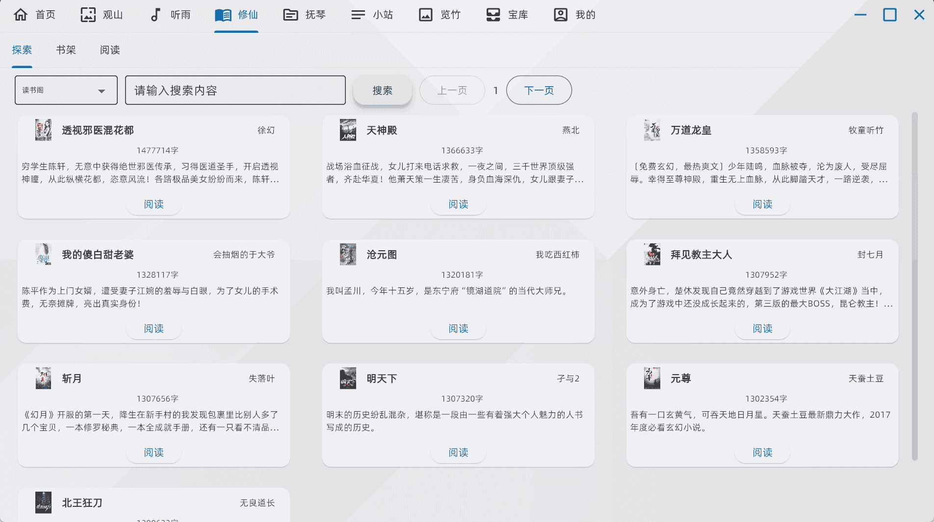 “修仙”模块为你提供了一个逃离现实,沉浸于修仙小说世界的窗口。在这里,你可以探索各种修仙故事,体验一段段奇妙的修真之旅。(所以我用笔趣阁🐶)