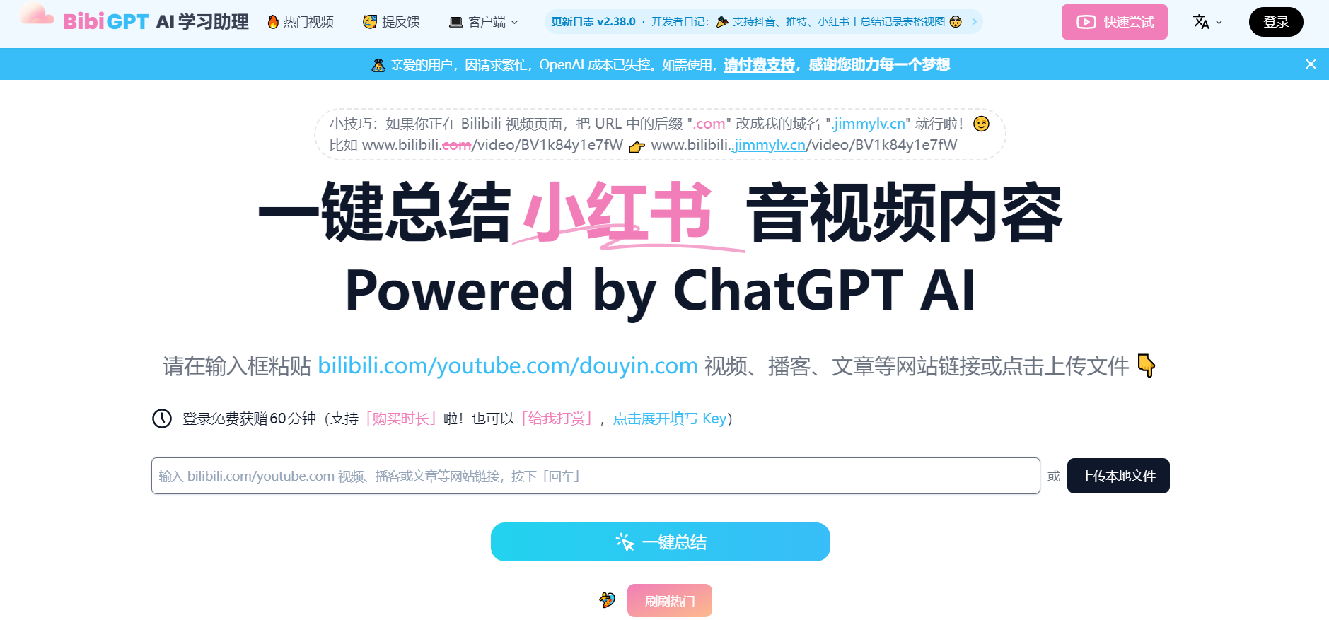 【BiliGPT】AI自动总结B站视频内容,ChatGPT API智能提取并总结字幕。该应用可以通过将哔哩哔哩的URL粘贴进去并点击一键总结,自动提取和总结视频内容。